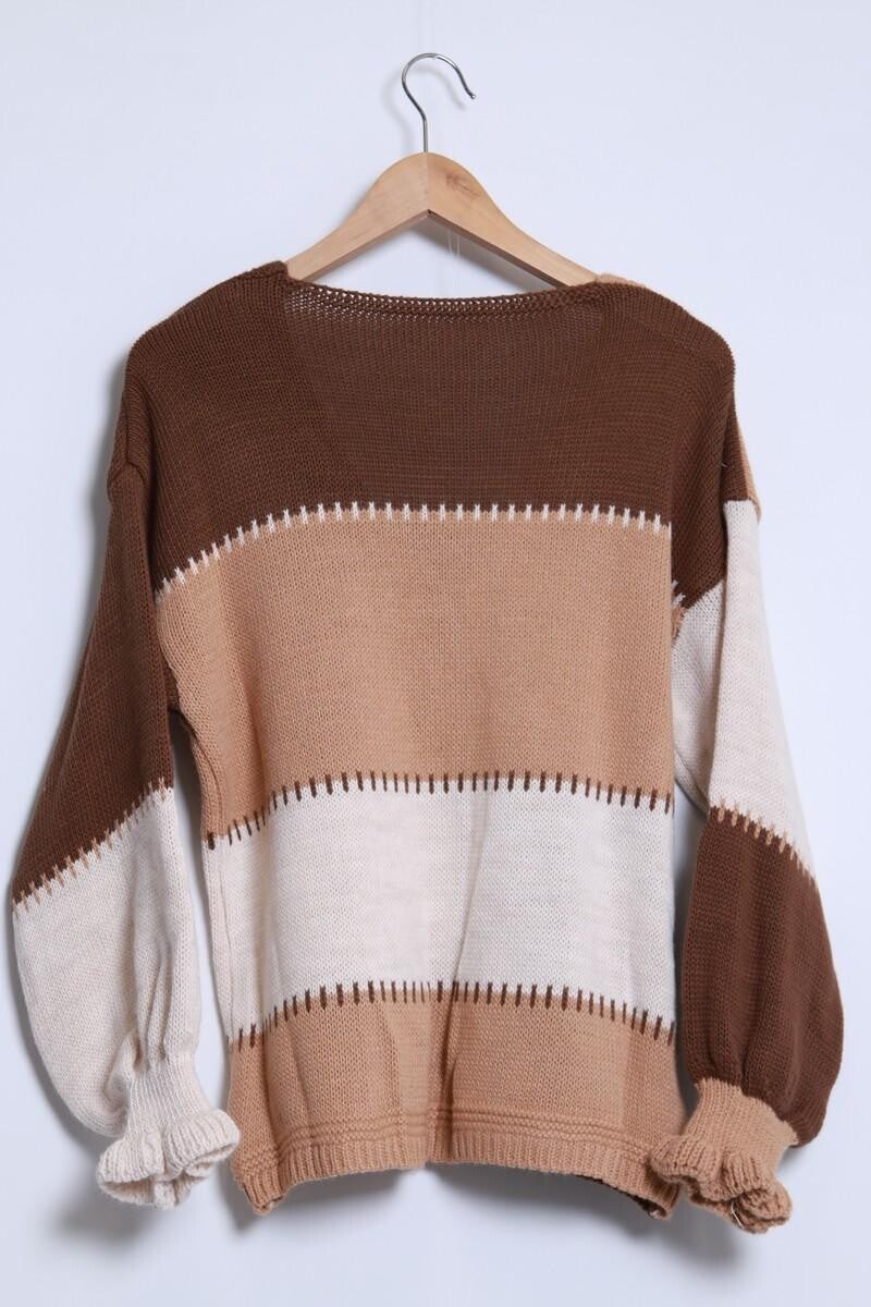 Description : Gilet multicouleur à manches bouffantes et 4 boutons doré